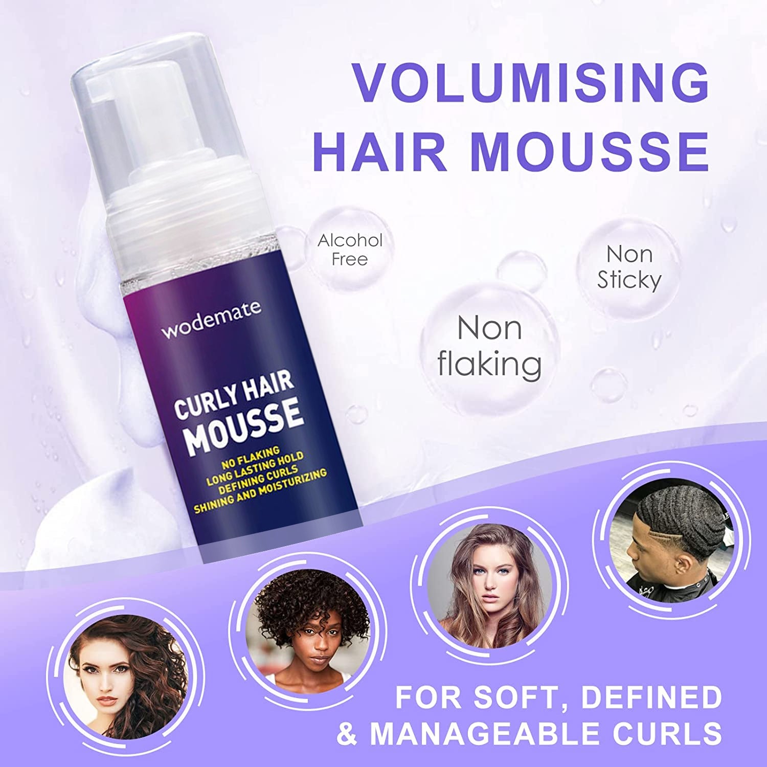 Mousse: a well-known super versatile foam that you can use to give some hold and definition to strands, as well as protect and tame your hair and give unruly curls some control. Mousse helps keep frizz in check and helps make your curls bouncier. Using the right amount of hair mousse can really make a difference.