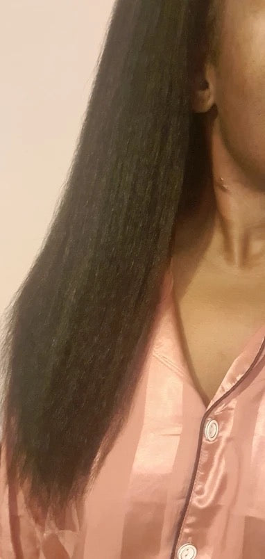 Our kinky straight is a texture between light yaki texture and coarse yaki texture. A PERFECT match to a healthy-looking Dominican blowout stretched look!